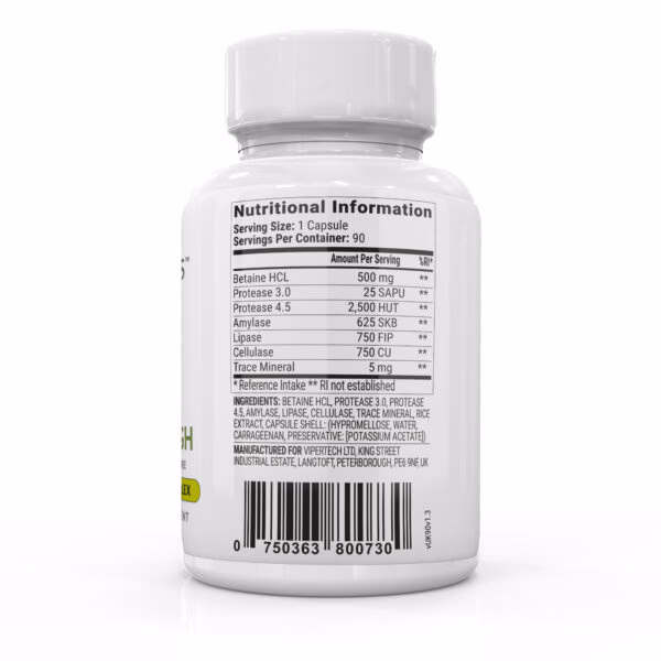 Et 100% vegansk tilskudd som øker magesyren naturlig med betainhydroklorid og 5 enzymer. Støtter fordøyelsen, reduserer oppblåsthet og halsbrann, og forbedrer næringsopptaket. Fri for pepsin.